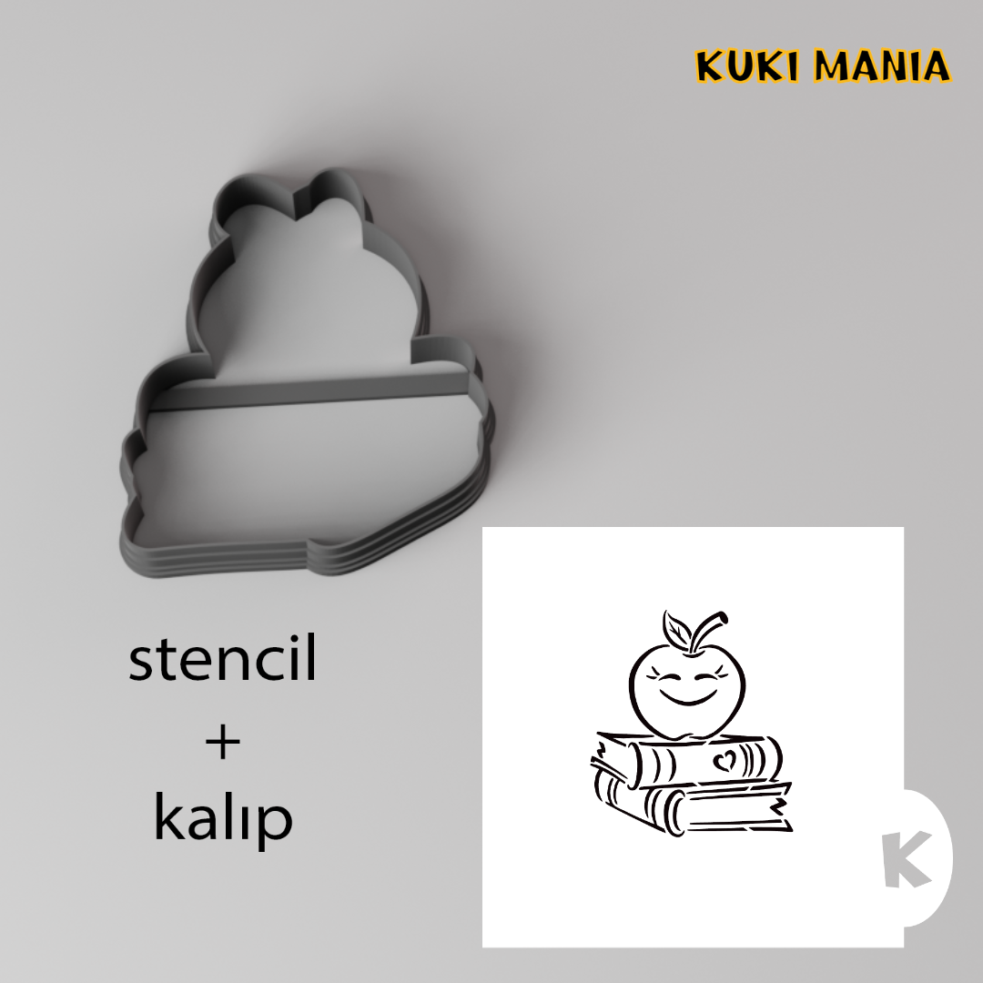 Elma ve kitaplar stencil+kurabiye kalıbı