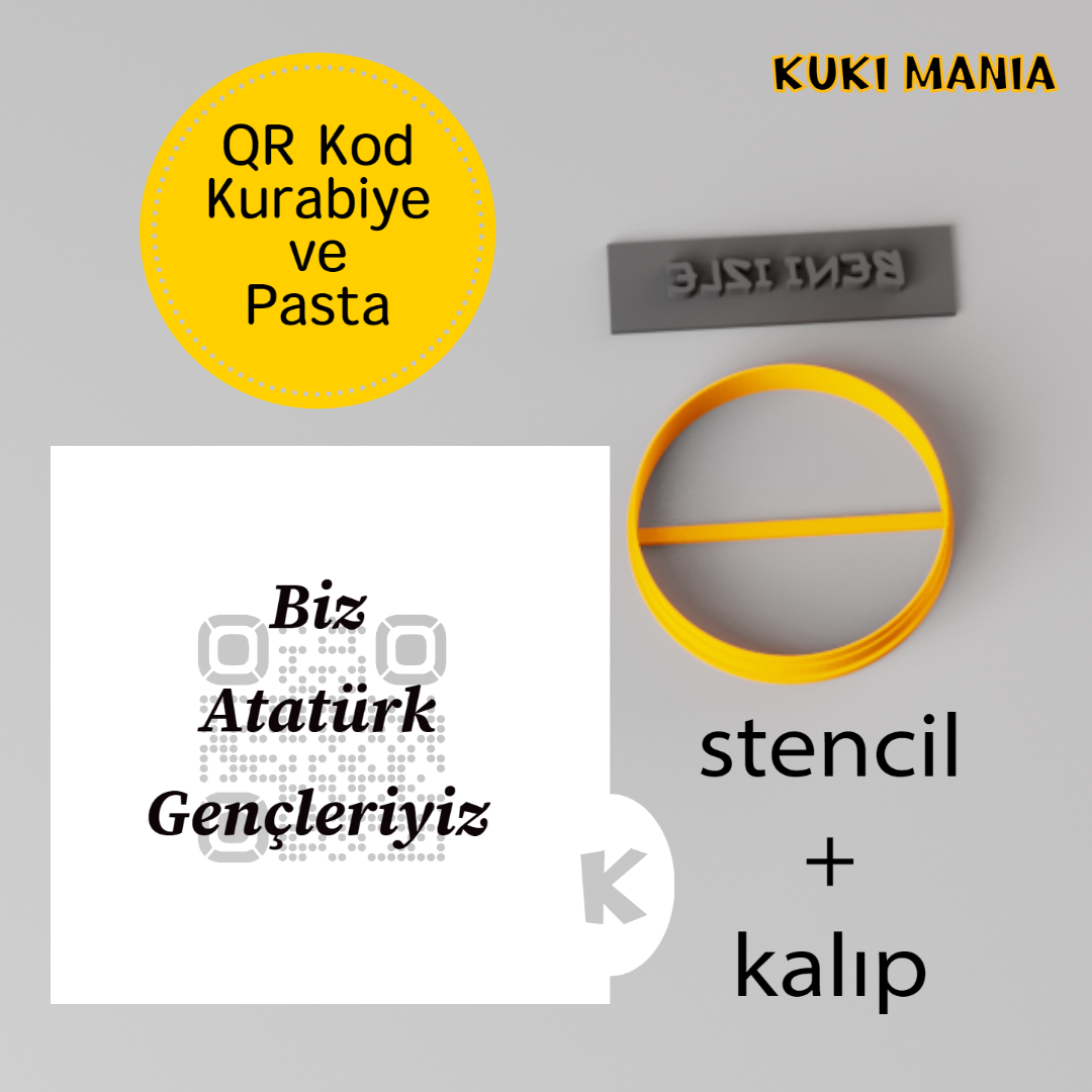 QR KOD Biz Atatürk Gençleriyiz kurabiye ve pasta stencil+kalıp